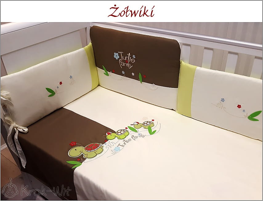 3 el. Pościel haftowana z ochraniaczem Żółwiki 100x135