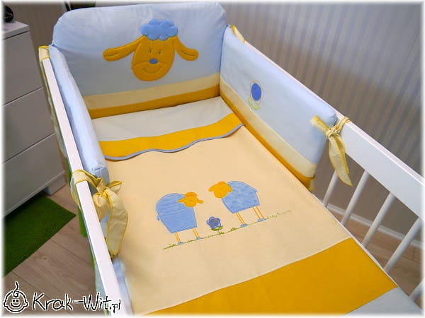 3 el. pościel haftowana "BARANKI NIEBIESKIE" bawełna