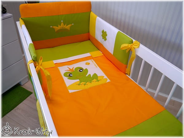 3 el. pościel haftowana "ŻABA RABA POMARAŃCZOWA" bawełna
