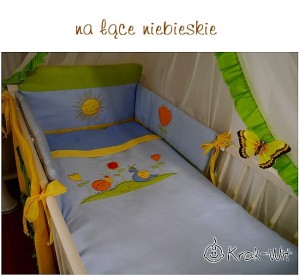 3 el. pościel haftowana bawełna-satyna NA ŁĄCE NIEBIESKIE 100x135