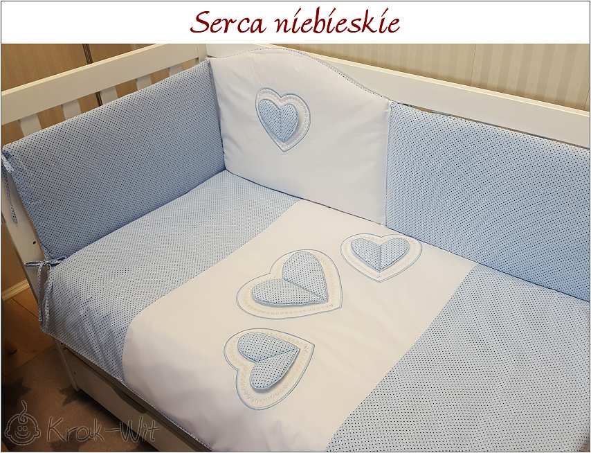 3 el. śliczna pościel haftowana SERCA NIEBIESKIE