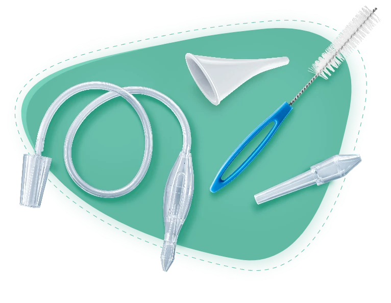 - Aspirator do usuwania katarem z rozkręcaną komorą i szczoteczkę.