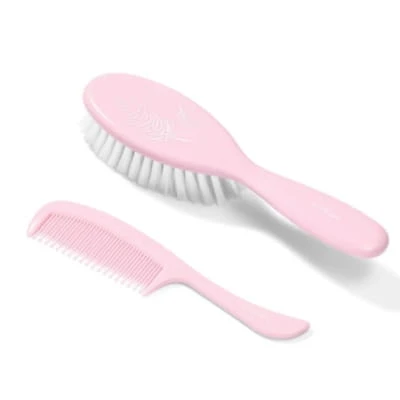 Miękka szczotka do włosów z delikatnym i cienkim włosiem przeznaczona jest do pielęgnacji niemowląt. Doskonale masuje skórę dziecka i dzięki swoim właściwościom antystatycznym nie elektryzuje włosów. Dołączony do zestawu grzebień ma zaokrąglone ząbki, dzięki czemu skóra dziecka nie zostaje podrażniona. Zarówno szczotka, jak i grzebień mają antypoślizgową gumę na rączkach, by czesanie było łatwiejsze i wygodniejsze.