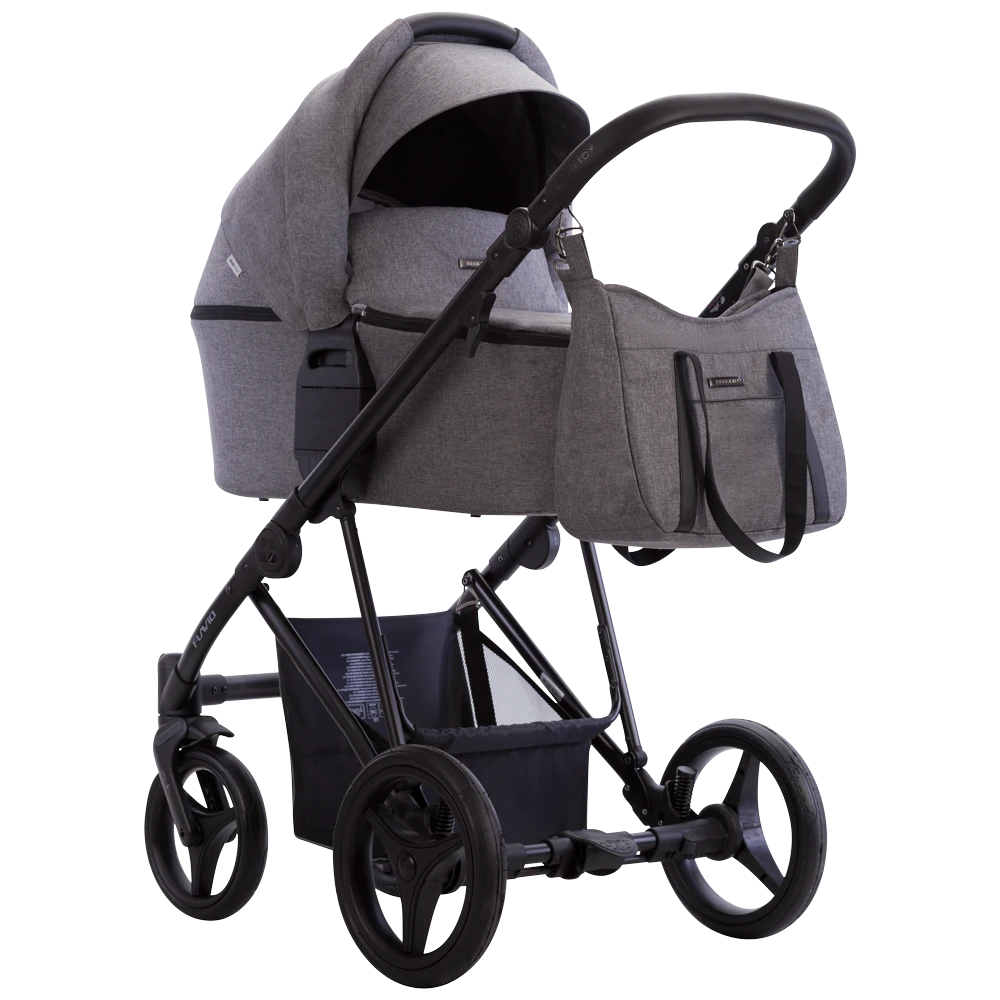 Nie jesteś zadowolony z wyściełanej wersji? Wybierz Flavio Pro, który zawiera wyściełaną ekoskórą gondolę i spacerówkę.