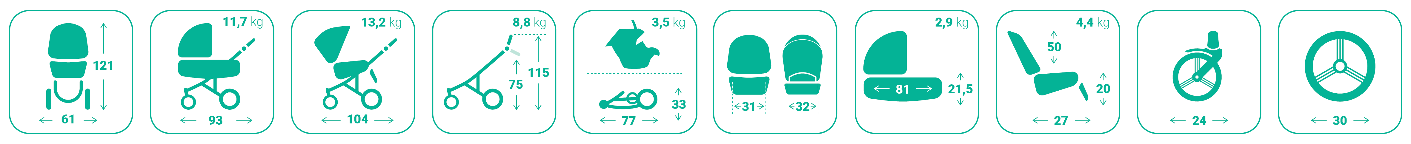 - WAGA I WYMIARY WÓZKA Z GONDOLĄ 11,7 KG 61cm x 93cm x 121cm