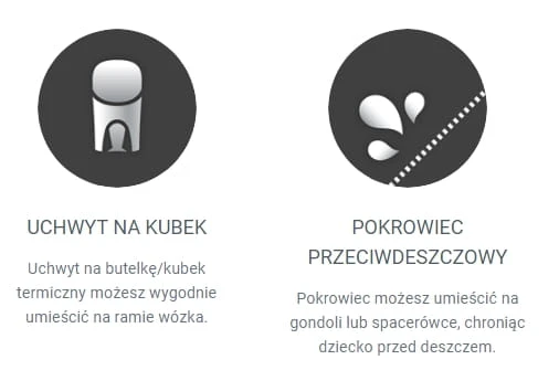 - Dowolnie regulowana budka pozwalająca osłonić dziecko przed słońcem, deszczem czy wiatrem