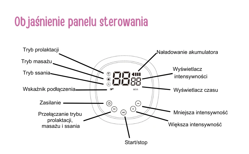 - Tryb ssania, który imituje rytm i intensywność ssania dziecka, dostosowując się do preferencji matki w celu pobudzenia lub spowolnienia laktacji.