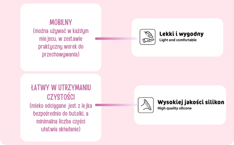 - Tryb masażu, który pomaga uniknąć zastoju mleka i ułatwia płynny wypływ.