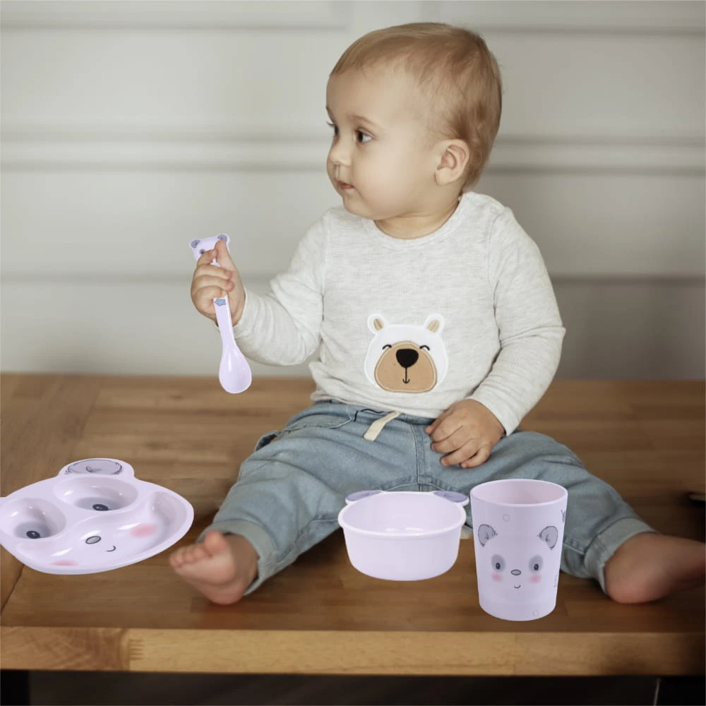Zestaw naczyń dla maluszka z misiem pandą – elegancki, praktyczny i bezpieczny komplet 5 elementów
