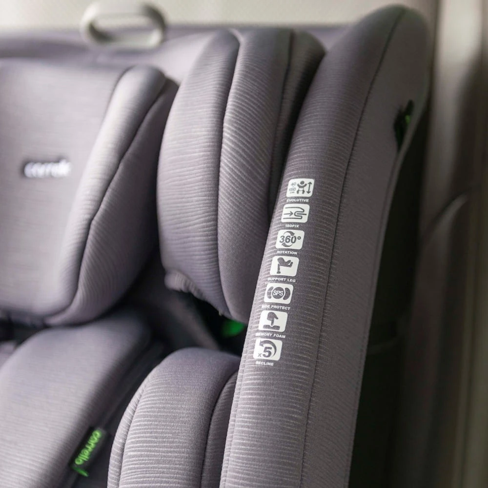 Fotelik Carrello Octopus spełnia surowe europejskie normy i-Size, które zapewniają: