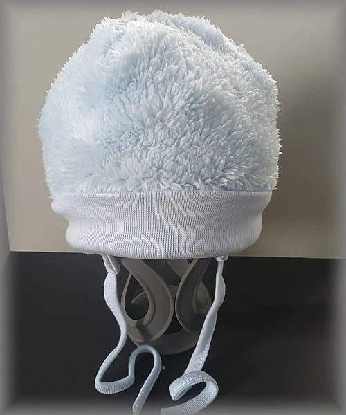 - materiał z wysokiej jakości polaru rozciąga się, dopasuje się do główki dziecka