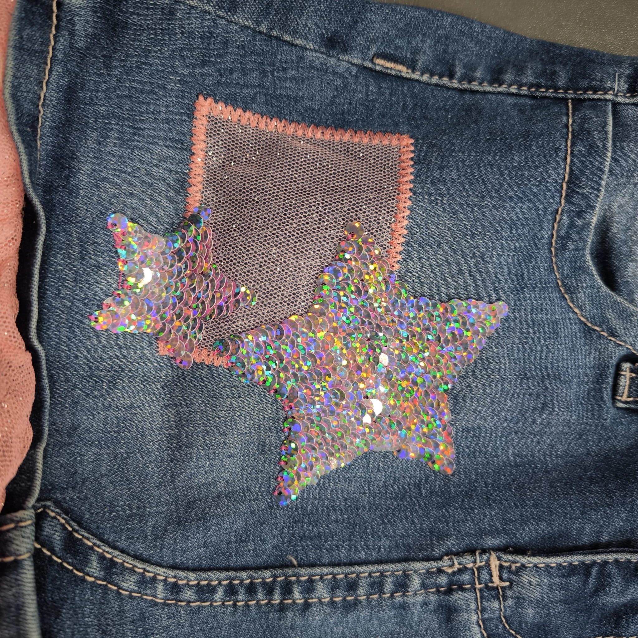 Spódniczka regulowana w pasie. Gwiazdki cekinowe dwustronne.