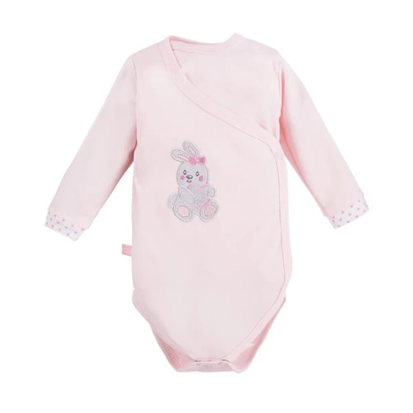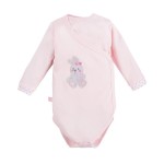 - Body zakładane z długim rękawem z kolekcji "Newborn" w pięciu wersjach kolorystycznych uszyte z miękkiej i przyjemnej w dotyku dzianiny. Z przodu znajduje się haft wesołego zwierzątka, zabezpieczony od wewnątrz, tak aby nie podrażniał delikatnej skóry dziecka. Krój umożliwia całkowite rozpięcie, przez co ubranko jest funkcjonalne i wygodne. Idealne w pierwszych miesiącach życia maluszka. Wykończone miękką lamówką. Rękawki zakończone są mankietami drukowanymi w delikatny wzór. Napki użyte w naszych wyrobach nie zawierają niklu. Wyprodukowane w Polsce, posiadają certyfikat "Bezpieczny dla dziecka". 100% bawełnaorganiczna