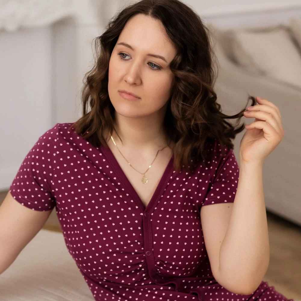EEVI Koszula do karmienia MARY bordo serduszka
