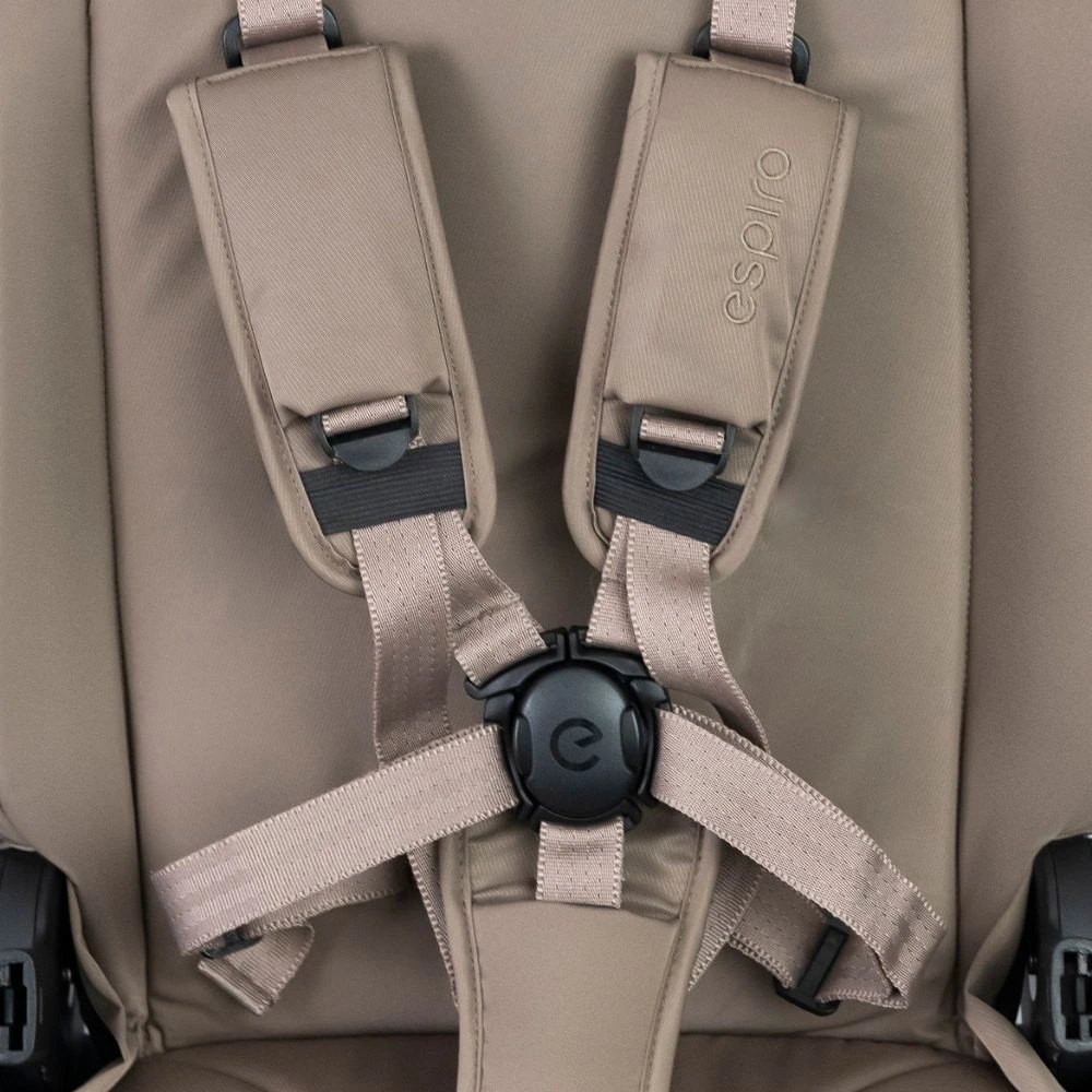 Bezpieczeństwo zapewniają 5-punktowe pasy z magnetycznym zapięciem oraz prosty w obsłudze hamulec One-Touch-Brake. Całość dopełnia elegancki wygląd – cztery stonowane wersje kolorystyczne, anodowana rama i subtelne detale 3D wykonane techniką hot-pressingu.