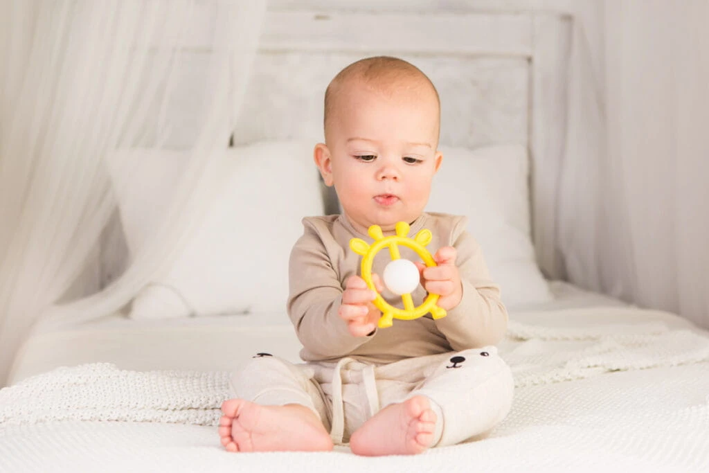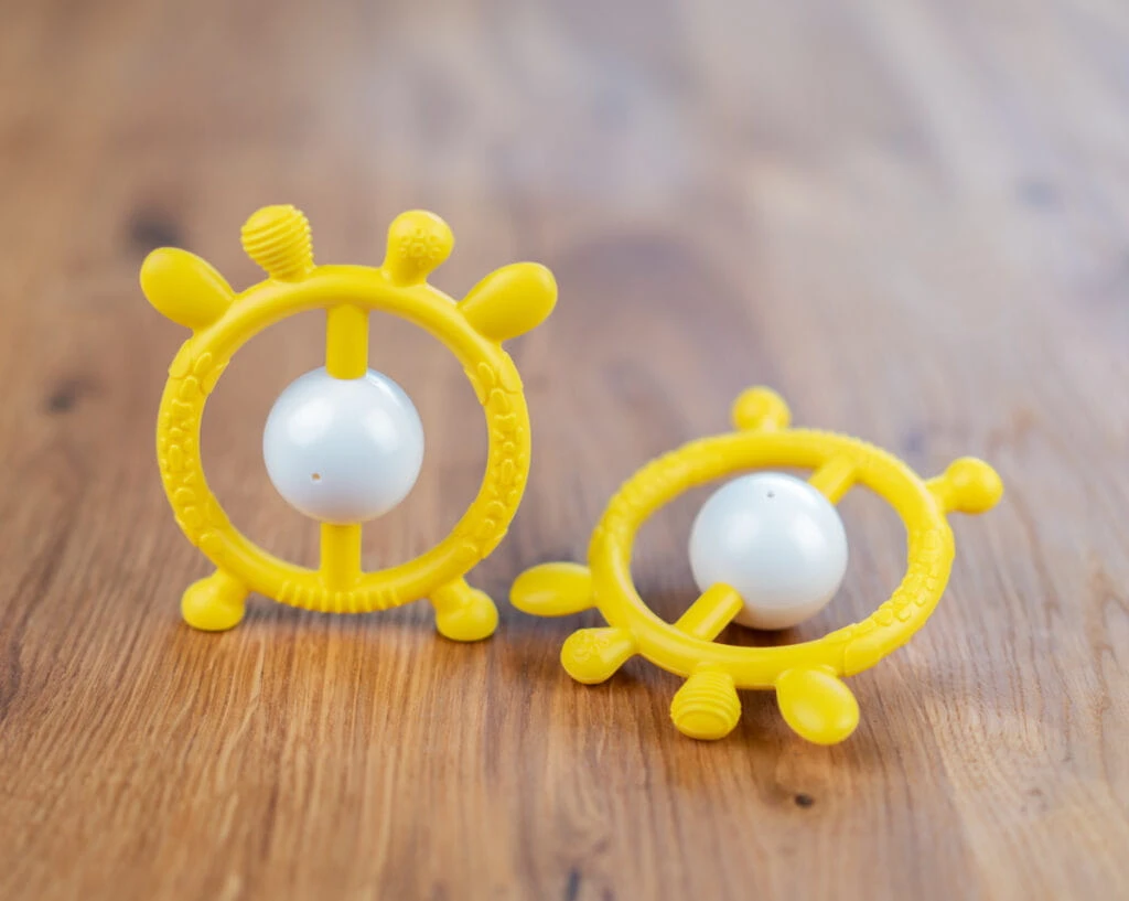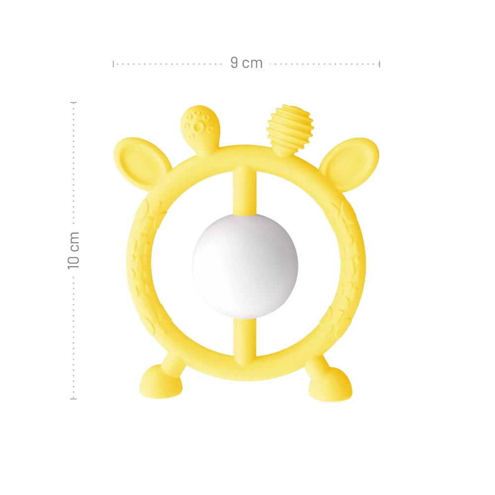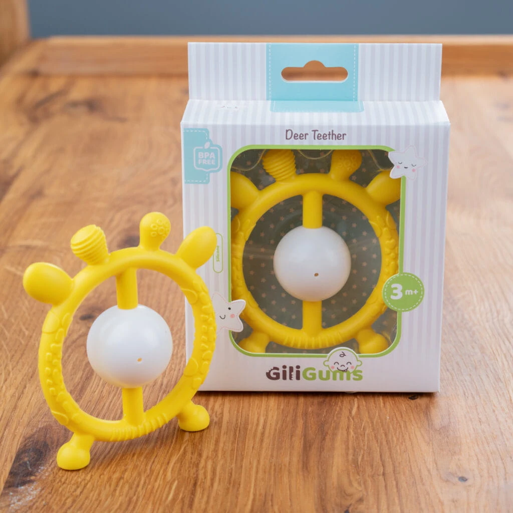 Gryzaczek i grzechotka w jednym! Ten wesoły jelonek w pięknym, słonecznym kolorze przyniesie ulgę ząbkującemu maluszkowi. Zróżnicowane faktury gryzaka delikatnie masują dziąsła, a jego kształt ułatwia małym rączkom chwytanie zabawki.