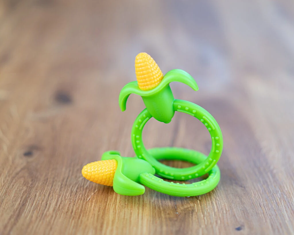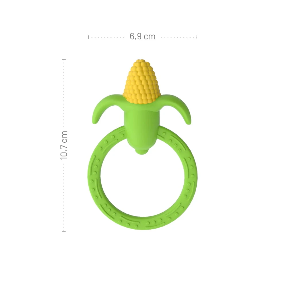 Gryzak w kształcie kukurydzy to idealny przezent dla każdego malucha, który zaczyan przygodę z ząbkowaniem! Soczyste kolory zachwycą bobasa, a praktyczne wypustki umieszczone na kolbie kukurydzy i uchwycie zabawki, przyniosą ulgę opuchniętym dziąsełkom.