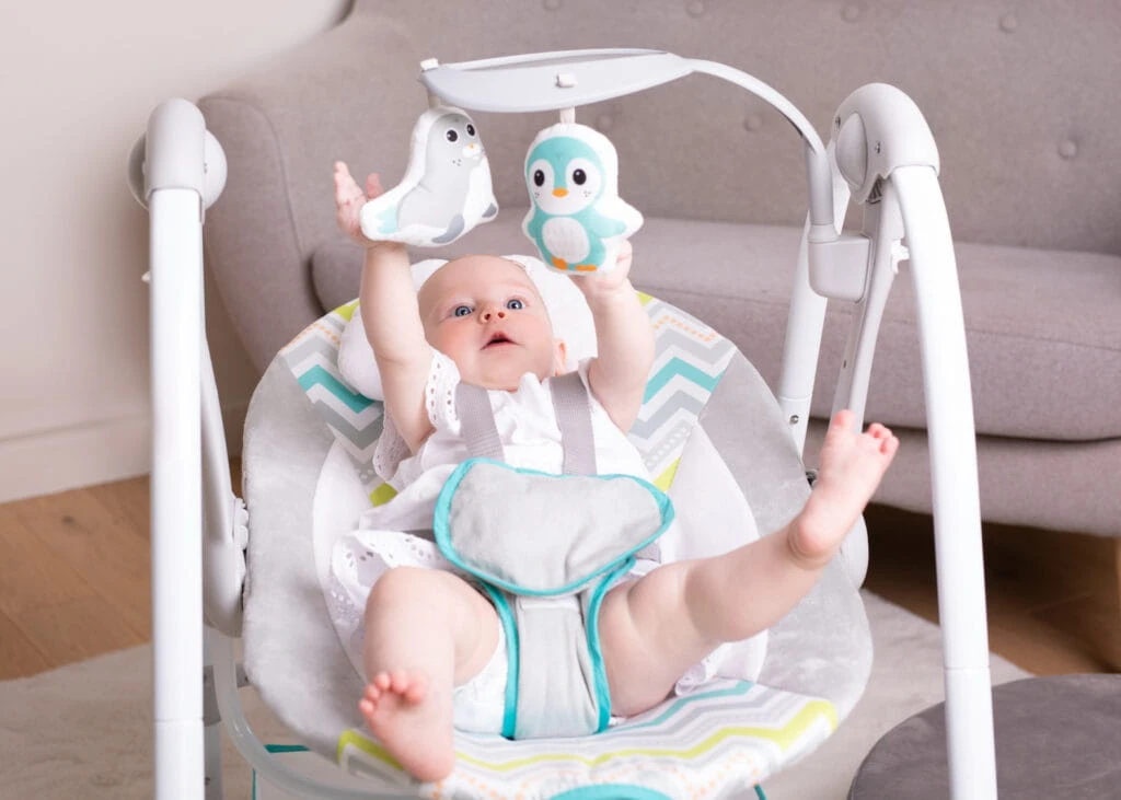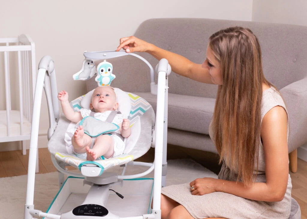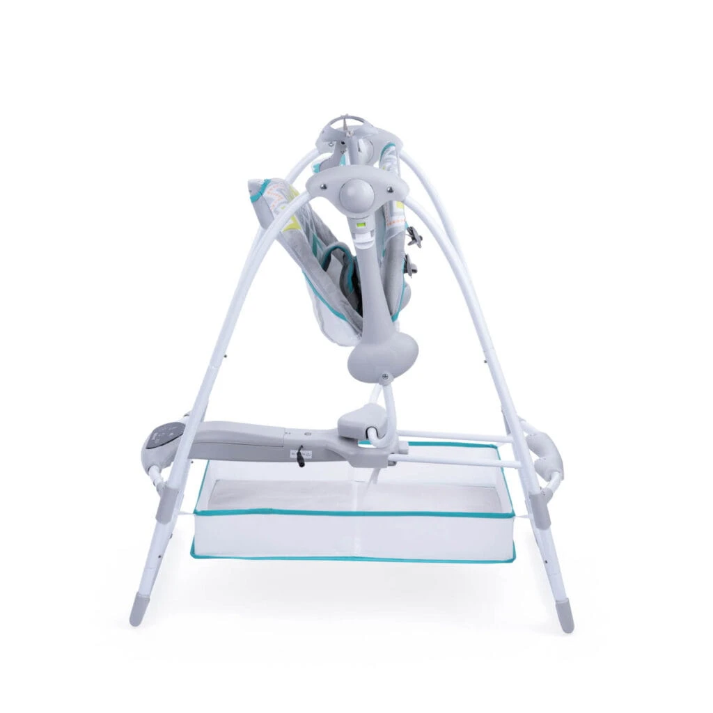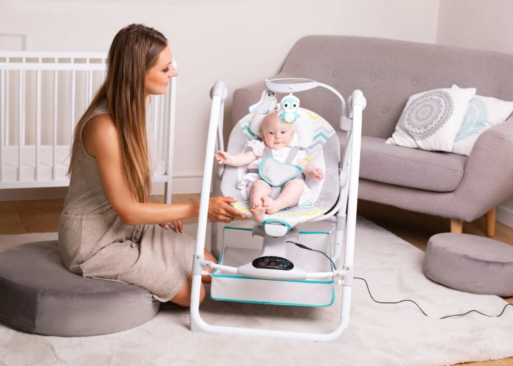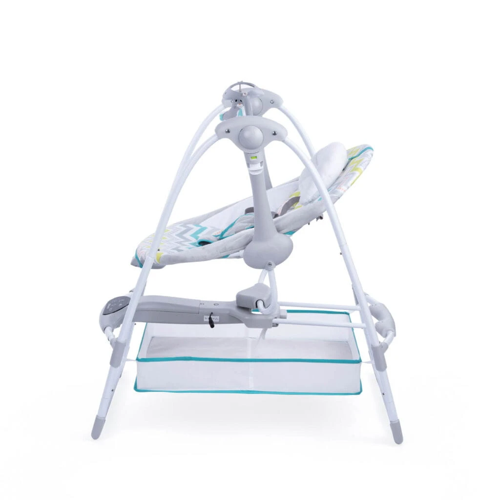 Komfortowa huśtawka, która kryje w sobie mnóstwo przydatnych funkcji. Znajdziemy tu odczepiany pałąk z zabawkami, pojemnik na najpotrzebniejsze drobiazgi, odczepiany zagłówek, funkcję wibracji i panel dotykowy, który odpowiada za uruchamianie melodii, sterowanie prędkością bujania i programowanie timera. Do wyboru mamy 3 różne nastawy czasowe, dzięki czemu w łatwy sposób dostosujemy huśtawkę do indywidualnych potrzeb maluszka. Blokada bujania umożliwi korzystanie z huśtawki w trybie statycznym, a antypoślizgowe nóżki i 5-punktowe pasy zadbają o bezpieczeństwo dziecka. Możliwość złożenia huśtawki na płasko ułatwia jej przechowywanie oraz przenoszenie. W zestawie znajduje się adapter, umożliwiający podłączenie Swing TuliLuli Deluxe do prądu. Funkcja zasilania bateryjnego pozwala skorzystać z huśtawki wszędzie tam, gdzie nie mamy dostępu do zasilania sieciowego.