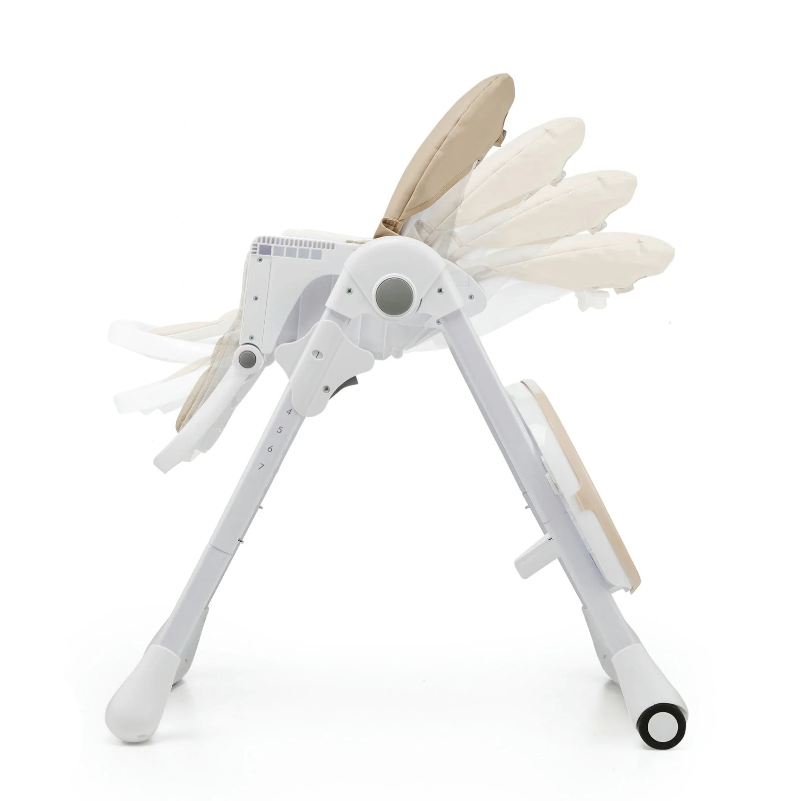 Krzesełko oferuje 7 poziomów regulacji wysokości, dzięki czemu łatwo dopasować je do różnych stołów. Tacka ma 3-stopniową regulację oraz zdejmowany blat, który można szybko umyć pod bieżącą wodą – materiał jest bezpieczny w kontakcie z żywnością. Całość wykonano z materiałów łatwych do czyszczenia, co znacznie ułatwia codzienne użytkowanie.