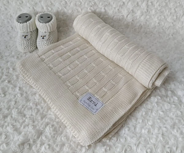 Kocyk z kolekcji "True love" wykonany z miękkiej i przyjemnej w dotyku przędzy bambusowej w pięciu wersjach kolorystycznych. Kocyk posiada modny warkoczowy splot. Na rogu znajduje się naszywka żakardowa.