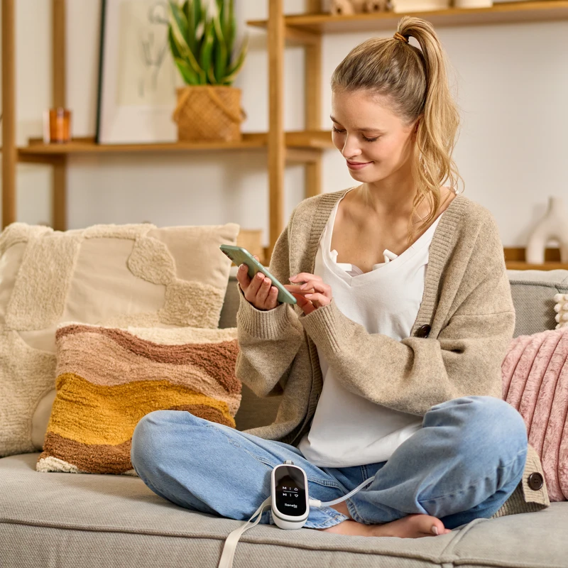 Kompaktowa konstrukcja pozwala schować jednostkę sterującą do kieszeni lub zawiesić ją na szyi przy pomocy dołączonej smyczki. Dzięki temu odciąganie pokarmu staje się wygodne, dyskretne i bezproblemowe – zarówno w domu, jak i poza nim.