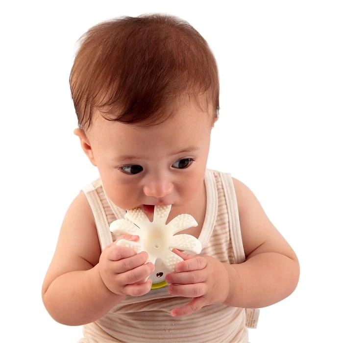 - miękki i elastyczny, działa łagodząco na dziąsła dziecka