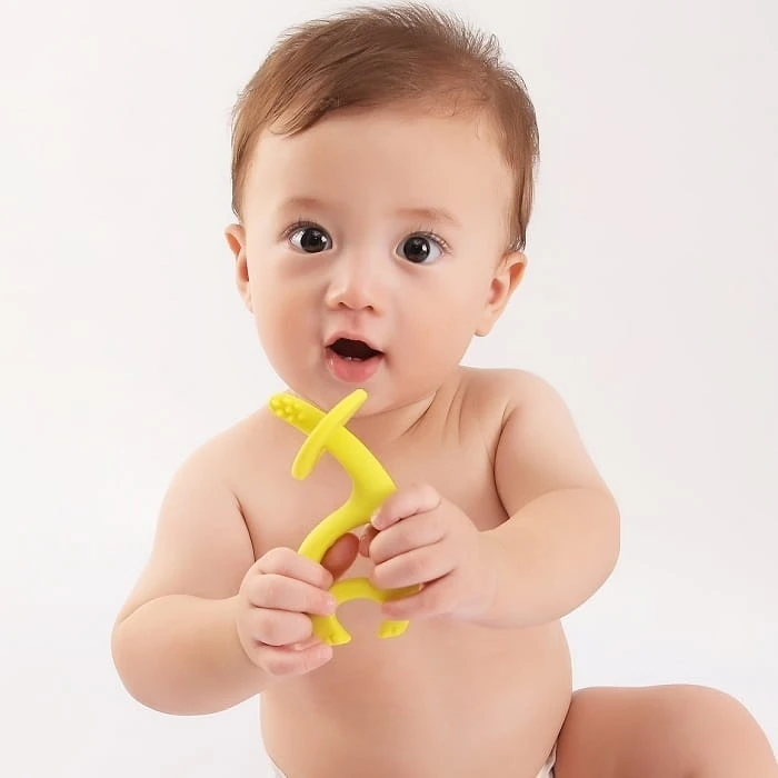 Miękki gryzak tańczący słonik został zaprojektowany z myślą o najmłodszych dzieciach. Końcówka gryzaka z wypustkami masuje delikatne dziąsełka i łagodzi ból podczas ząbkowania. Odpowiedni kształt i rozmiar umożliwiają dziecku łatwe chwytanie. Może posłużyć dziecku jako szczoteczka do zębów bez możliwości zadławienia. Kształt słonika i jego kolorystyka zachęcą Malucha do zabawy. Można używać go w zmywarce, mikrofalówce, a także zamrażarce.