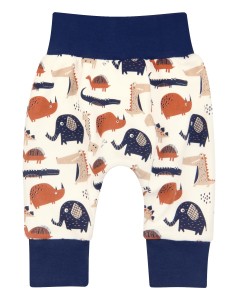 Praktyczne spodnie, uszyte z delikatnej organicznej bawełny. Nogawki zakończone ściagaczami.