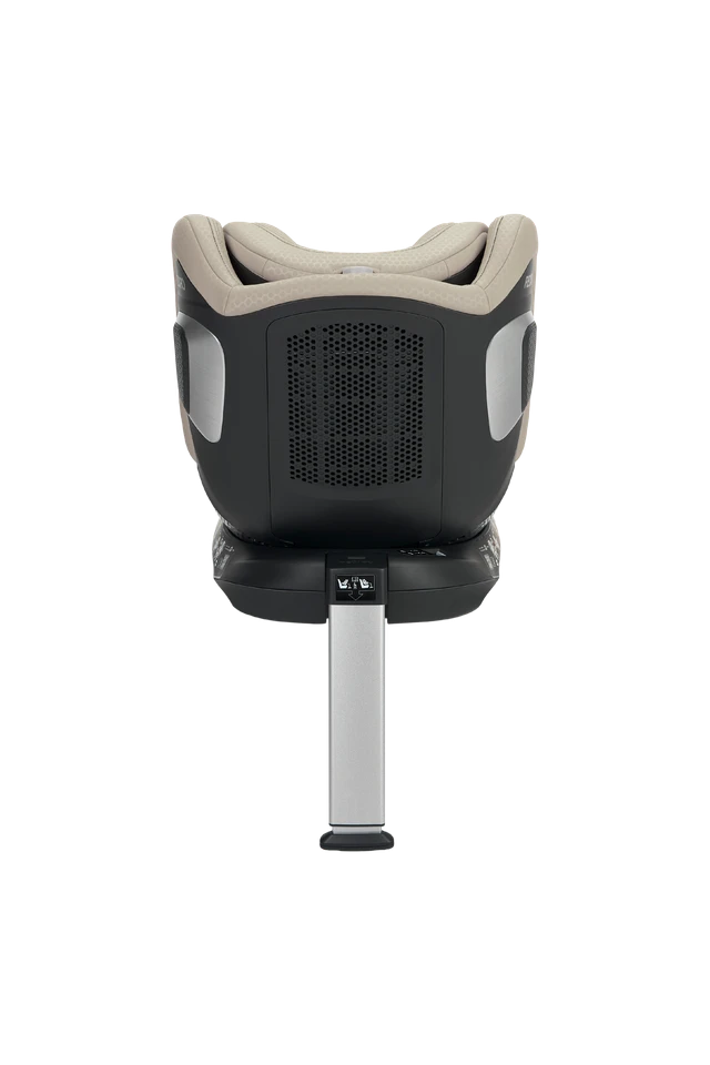Instalacja za pomocą systemu ISOFIX i nogi stabilizującej zapewnia szybki i pewny montaż. Fotelik spełnia rygorystyczną normę bezpieczeństwa i-Size, a jego trzypunktowy system mocowania skutecznie pochłania siły uderzenia w razie kolizji.