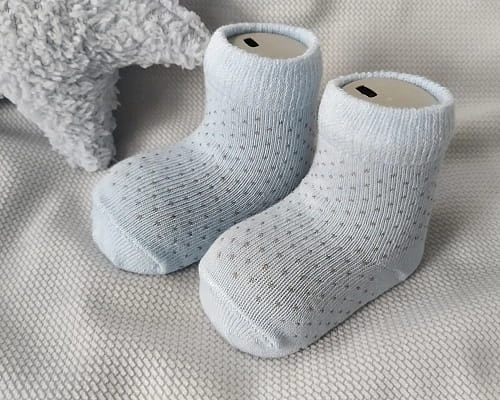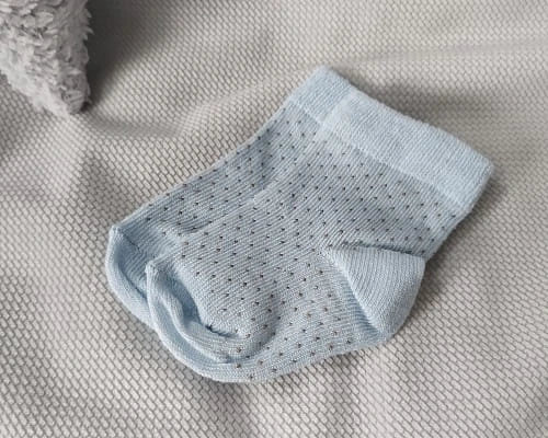 Skarpetki bawełna 0-6m 5-8cm niebieskie z kropkami beżowymi