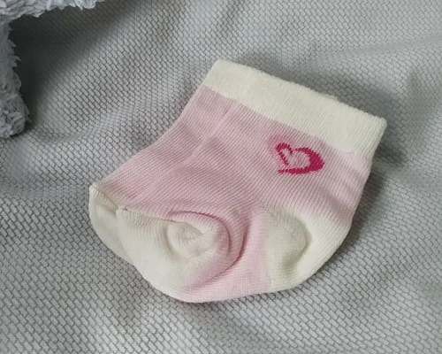 Skarpetki bawełna 0-6m 5-8cm różowo-ecru serduszko