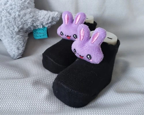 Skarpetki bawełna główki 0-6m 5-8cm czarne króliczki