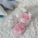 Skarpetki stópki bawełna 2-pak 0-6m 5-8cm ecru+róż