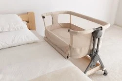 Dzięki kółkom z blokadą możesz łatwo przestawiać łóżeczko i ustawić je w dowolnym pomieszczeniu – w sypialni, salonie lub pokoju dziecka. Po ustawieniu wystarczy zablokować kółka, aby zapewnić pełną stabilność.