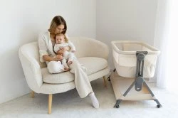 NUBU to praktyczne łóżeczko 2w1, które łączy wygodę codziennej opieki z bezpiecznym i komfortowym snem dziecka już od pierwszych dni życia.