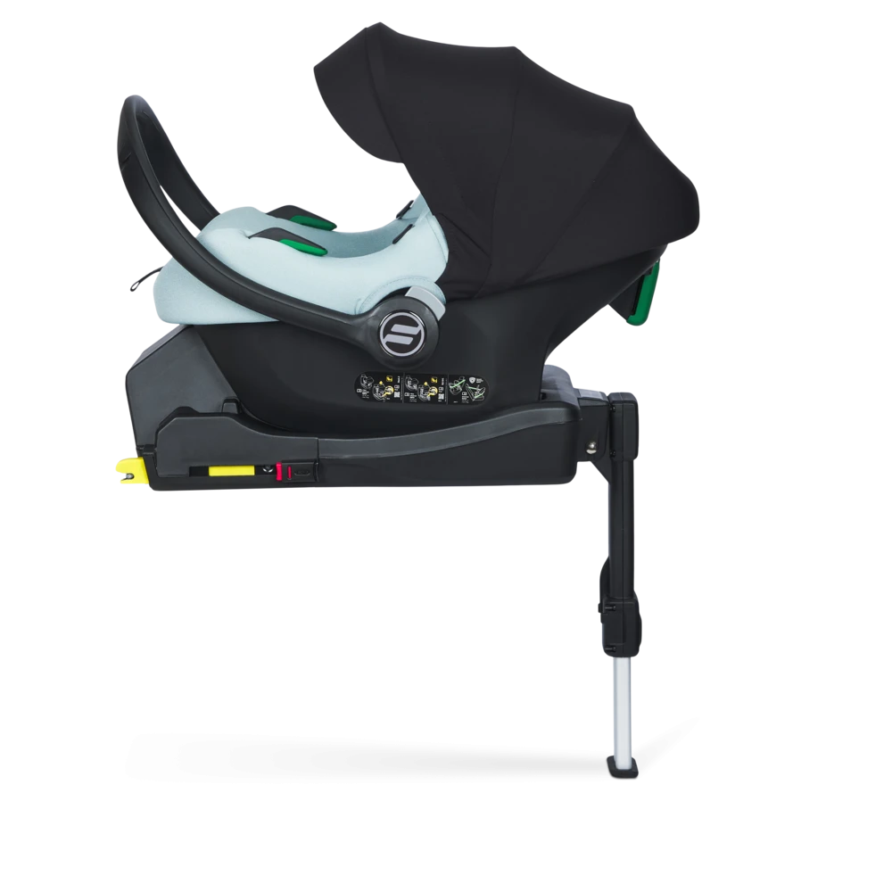 System Click 'n' Drive informuje o poprawnym montażu fotelika na bazie za pomocą sygnałów świetlnych i dźwiękowych. Baza jest mocowana w aucie przez system ISOFIX oraz nogę stabilizującą, co gwarantuje pewne i bezpieczne połączenie.